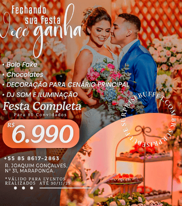 Continuar realizando sonhos com excelência, superando a marca de 600 eventos e consolidando o Buffet Surpresa como o espaço preferido para festas de 15 anos, casamentos, aniversários e confraternizações.